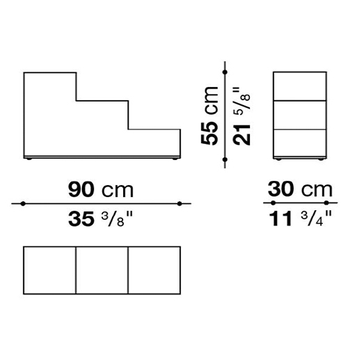 | Dimensions | 90 x 30 x H 37 cm; 90 x 30 x H 55 cm. |