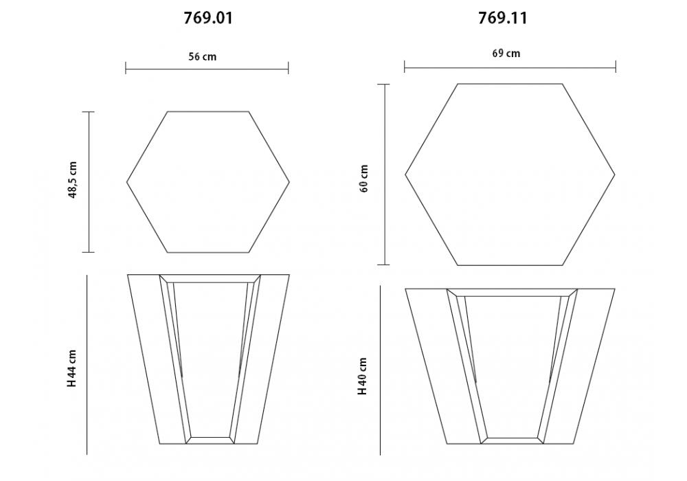 | Dimensions | 56 x 48.5 x H 44 cm; 69 x 60 x H 40 cm. |