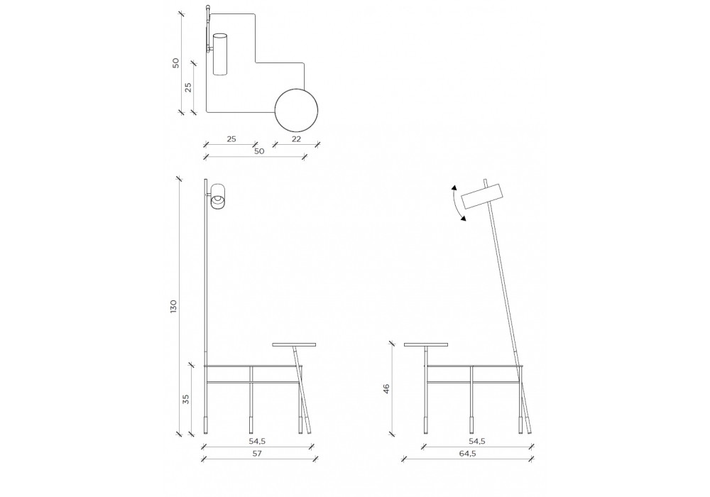| Height | 35 / 46 / 130 cm |