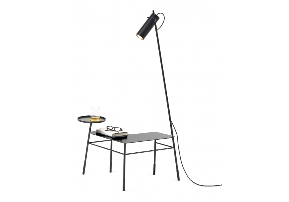Dase' designed by Idelfons Colombo for Mogg is a metal corner occasional table with lamp and tray. The lamp can be positioned on the left or on the right, to be defined during assembly. Available in 2 finishes.