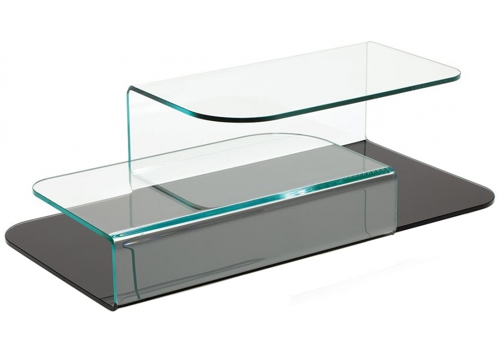 Hug designed by Arkema Studio for Sovet is a coffee table in transparent curved glass and lacquered MDF base. Available in different finishes.