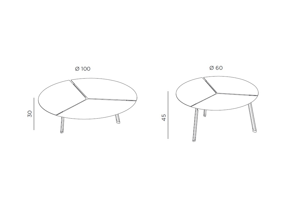 | Dimensions | • Ø 100 x H 30 cm; • Ø 60 x H 45 cm |