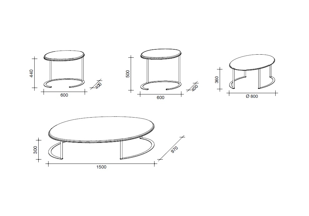 | Dimensions | 60 x 40 x H 44 cm; 60 x 40 x H 50 cm; 150 x 97 x H 30 cm; Ø 80 x H 36 cm |
