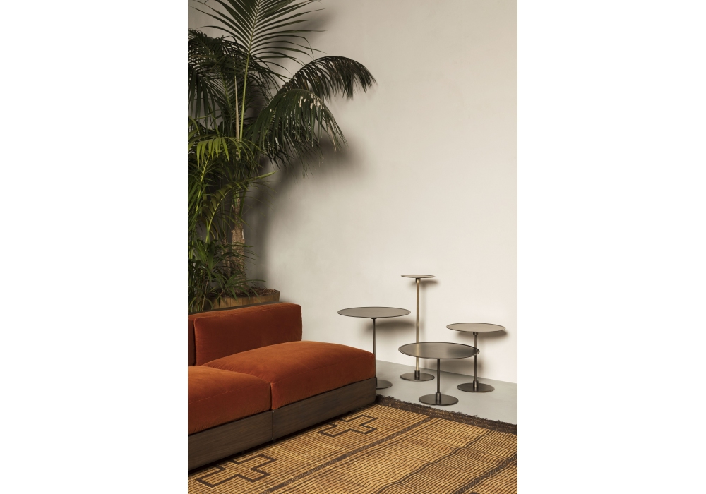 Gong designed by Gianfranco Frattini for Acerbis is a side table in metal structure in different sizes and heights. Available in monochromatic or bichromatic version.
