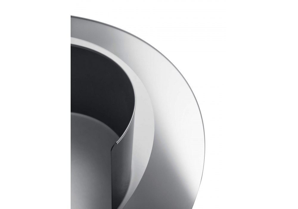 Fascia Specchiata designed by Luigi Caccia Dominioni for Azucena is an oval coffee table with extra light transparent glass top with mirrored perimeter band. Base with metallic gray finish.