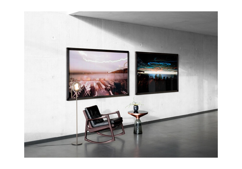 Bell Copper designed by Sebastian Herkner for ClassiCon is a side table made with hand-blown glass base in quartz grey, metal top frame solid copper and crystal glass tabletop black lacquered.