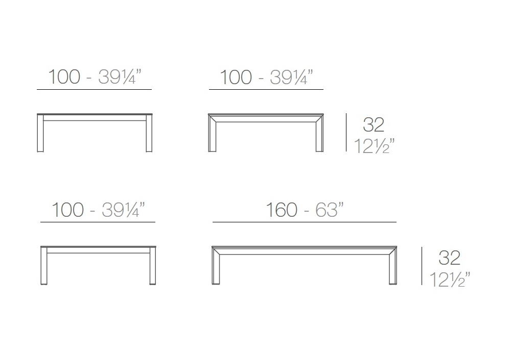 Frame Aluminium designed by Ramón Esteve for Vondom is a coffee table with powder-coated aluminum legs. HPL top. Available in various finishes and dimensions. Suitable for indoor and outdoor use.