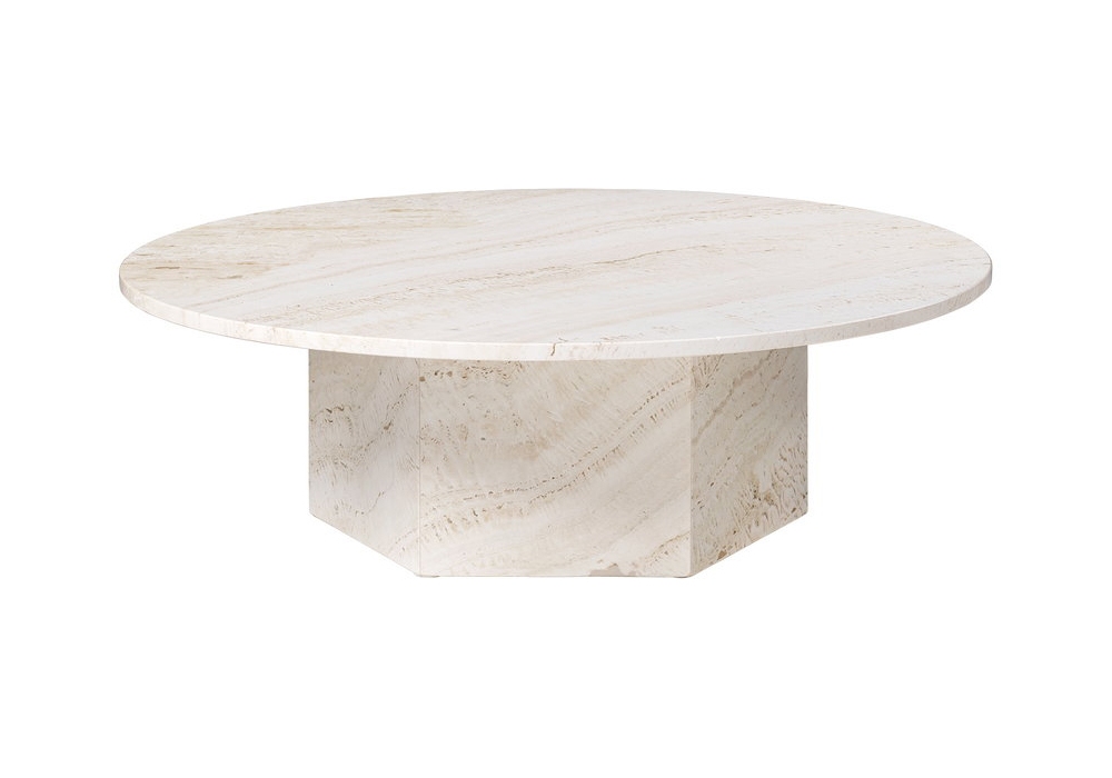 Epic designed by GamFratesi for Gubi is a coffee table made from steel or travertin available in different finishes and sizes.