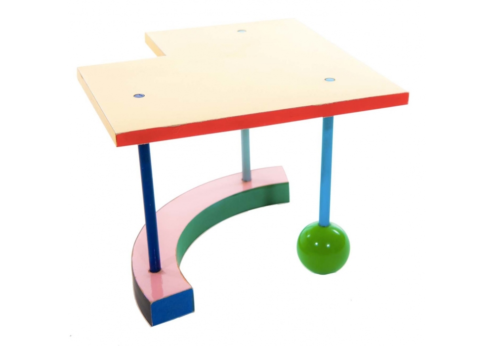 Hollywood designed by Peter Shire for Memphis Milano is a coffee table made of metal and plastic laminate.