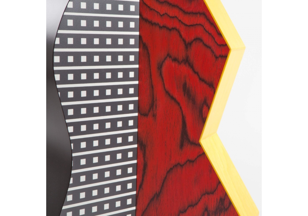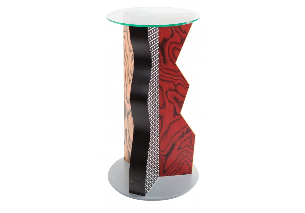 Ivory designed by Ettore Sottsass for Memphis Milano is an end table made of pre-composite wood, plastic laminate and crystal.