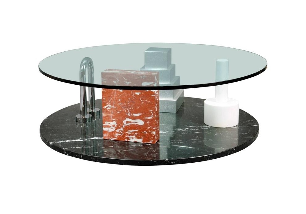 Park designed by Ettore Sottsass for Memphis Milano is a coffee table made with marble base and glass top.