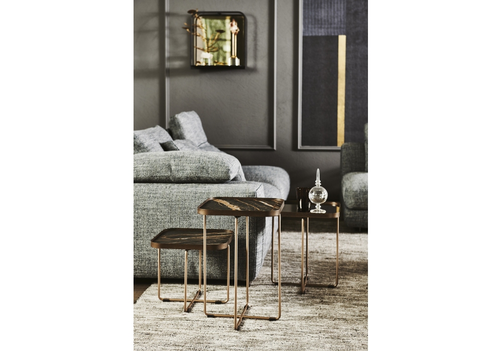 Benny Keramik designed by Studio Kronos for Cattelan Italia is a low tables with top in ceramic Marmi in several colours. Steel structure in black or titanum embossed lacquer or base in Bronze and top frame in brushed Bronze.