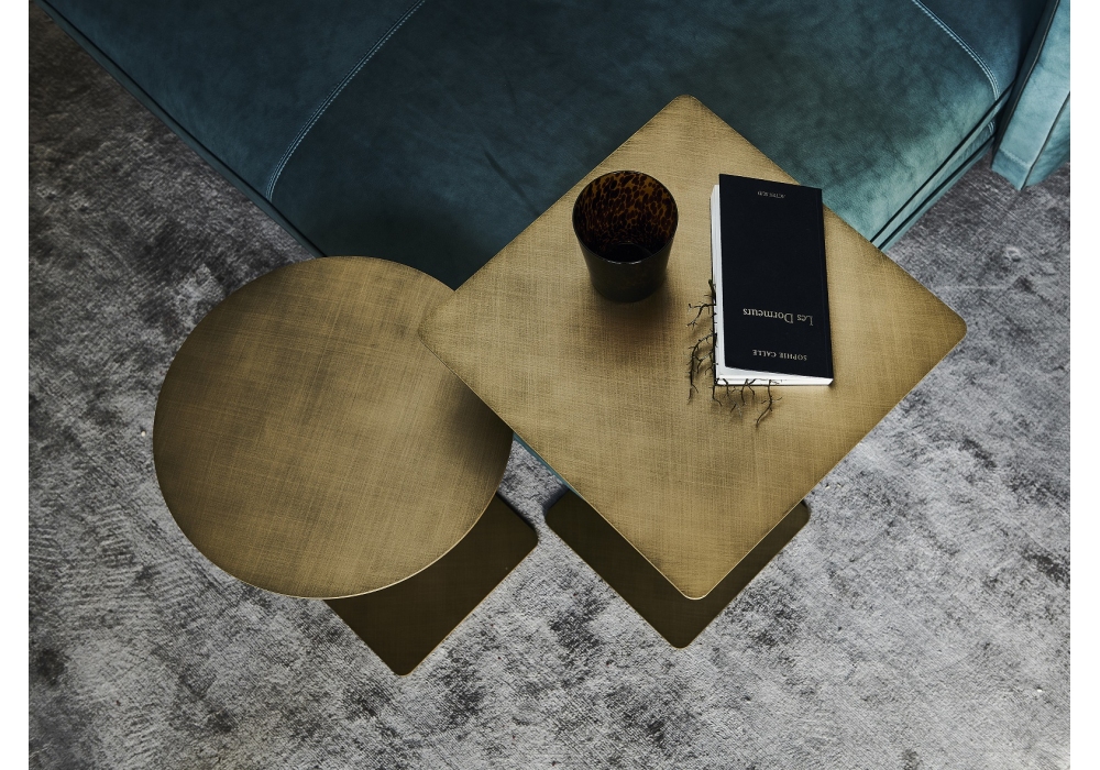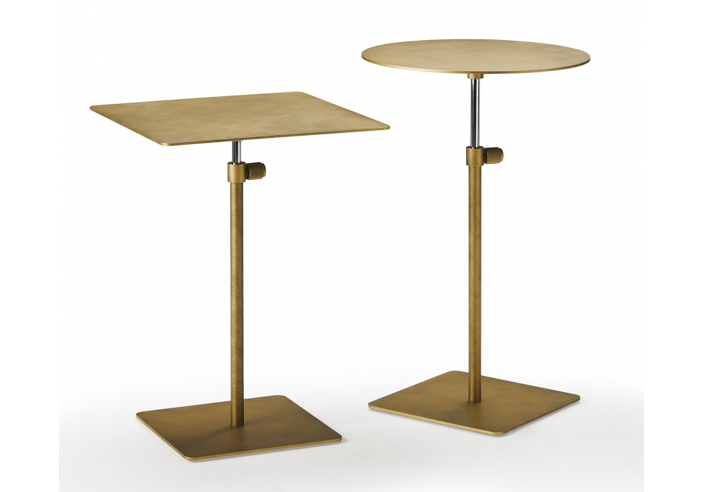 Step designed by Paolo Cattelan for Cattelan Italia is a adjustable height side table with base, leg and top in Brushed Brass o Brushed Grey, titanium or black embossed lacquered steel. Steel stem in black chrome finish. Available in two dimensions.
