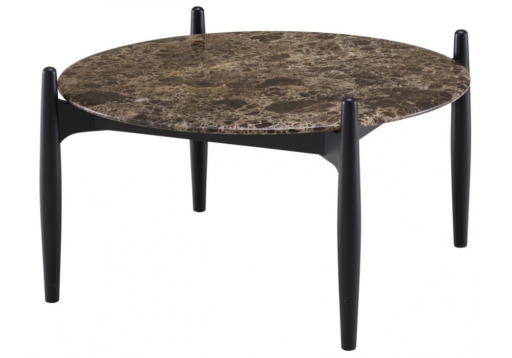 Caffè designed by Benjamin Voisin for Ligne Roset is a coffee table made with base in solid black satin lacquered beech and marble top with rounded edge. Available in different finishes.