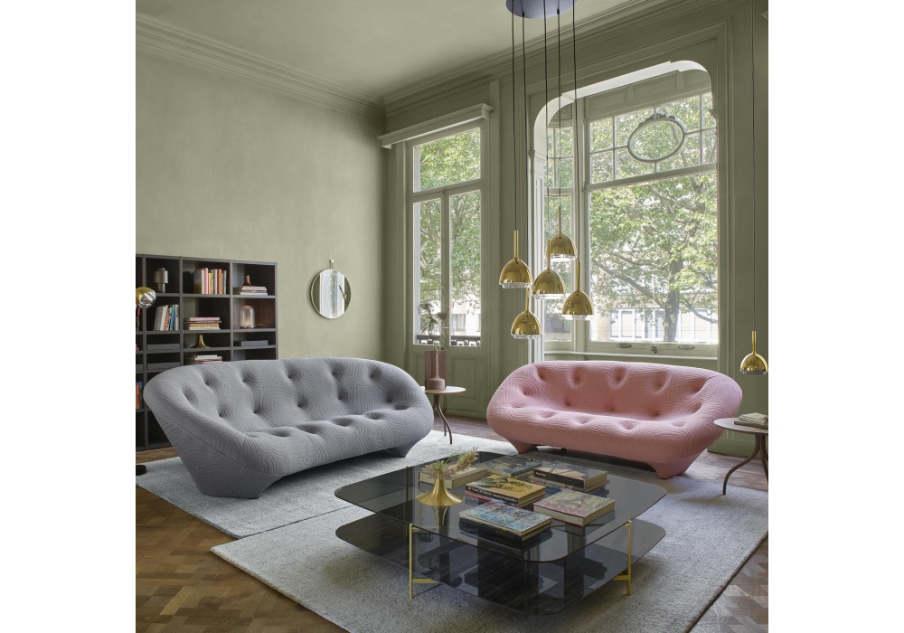 Clyde designed by Numéro111 for Ligne Roset is a coffee table with structure made of steel, available in 2 finishes. Upper top made of grey smoked glass and lower top in black or white marble-effect ceramic stoneware. Available in different sizes.