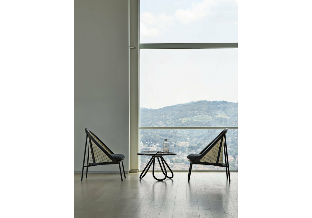 Arch Stopsol designed by Front for Gebrüder Thonet Vienna is a coffee table with "Stopsol" glass top and curved beech structure available in different finishes.