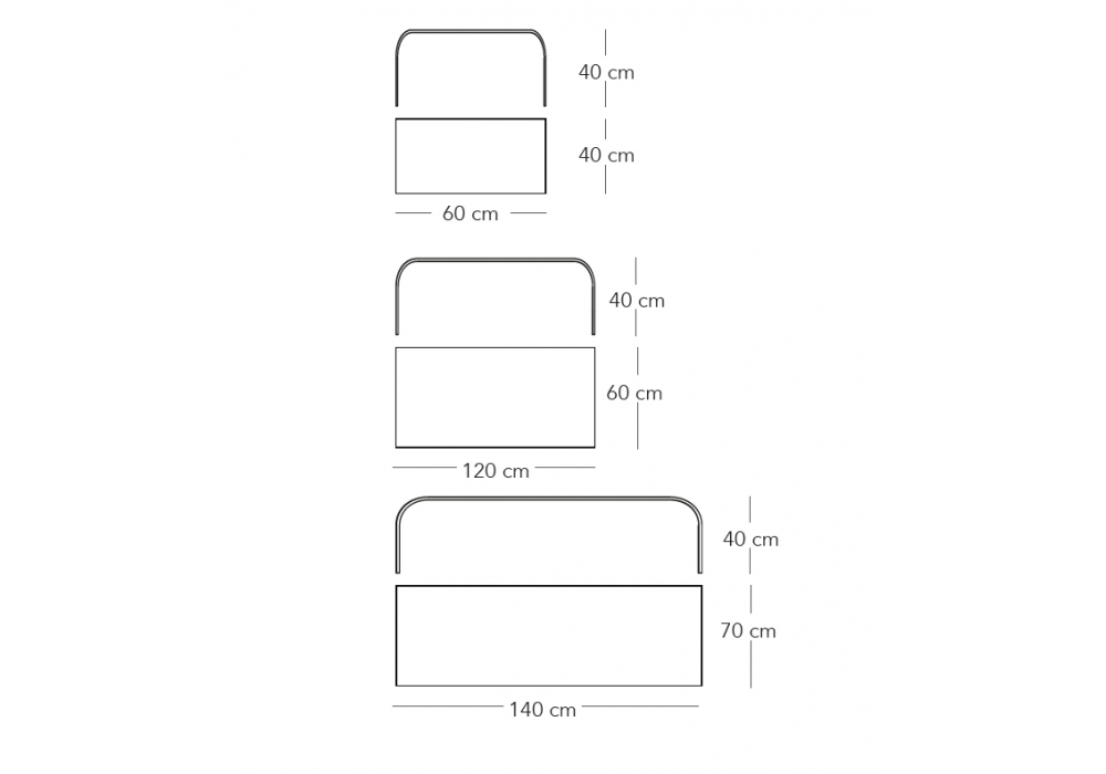 | Dimensions | 60 x 40 x H 40 cm; 120 x 60 x H 40 cm; 140 x 70 x H 40 cm |