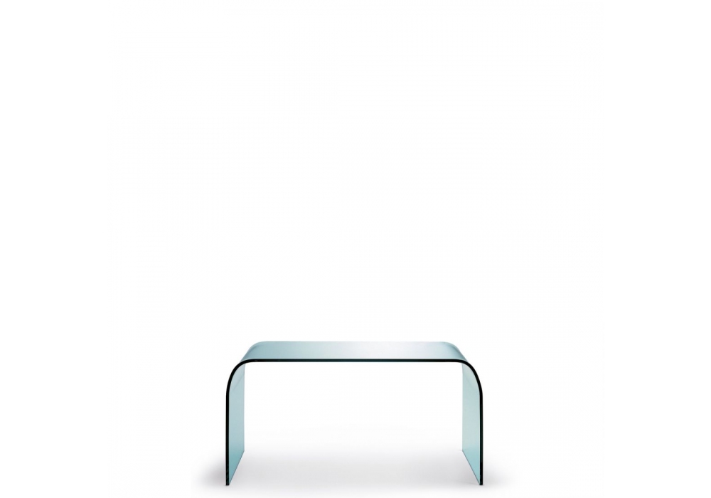 Tavolino Curvo designed by Pietro Chiesa for Fontana Arte is a coffee table made entirely of double-curved and ground float glass, 15 millimeters thick. Available in 3 different dimensions.