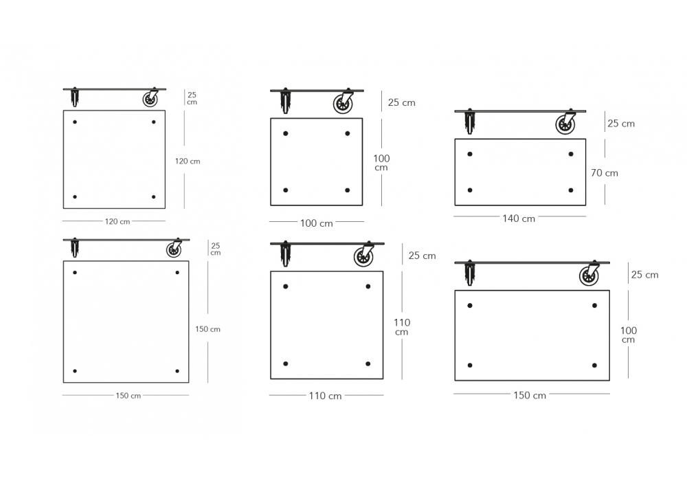 | Dimensions | 140 x 70 x H 25 cm; 150 x 100 x H 25 cm; 100 x 100 x H 25 cm; 110 x 110 x H 25 cm; 120 x 120 x H 25 cm; 150 x 150 x H 25 cm. |
