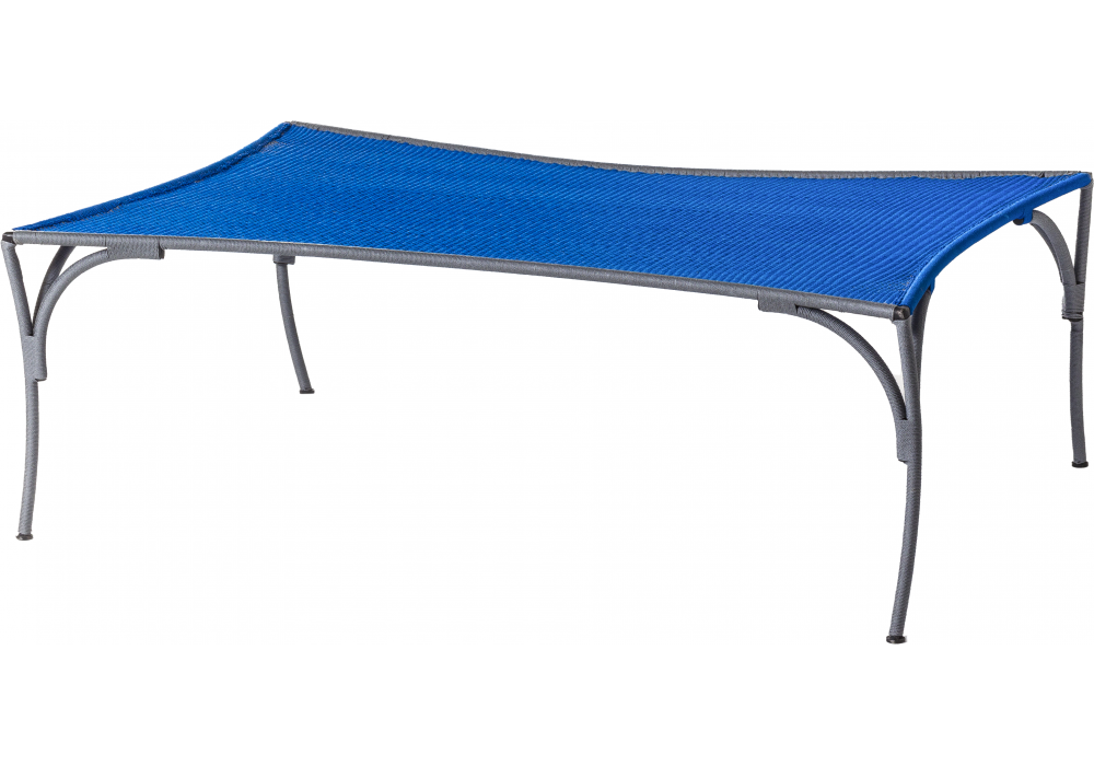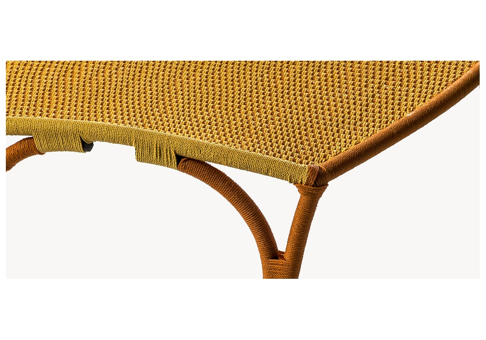 Arco designed by Martino Gamper for Moroso is a coffee table made of painted steel base and colored polyethylene handwoven threads.