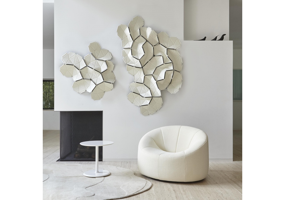 Elysee designed by Pierre Paulin for Ligne Roset is a side table with tops in bevelled MDF, linked with aluminium lacquered formed tubing. Available in 2 types: with 2 or 3 tops.