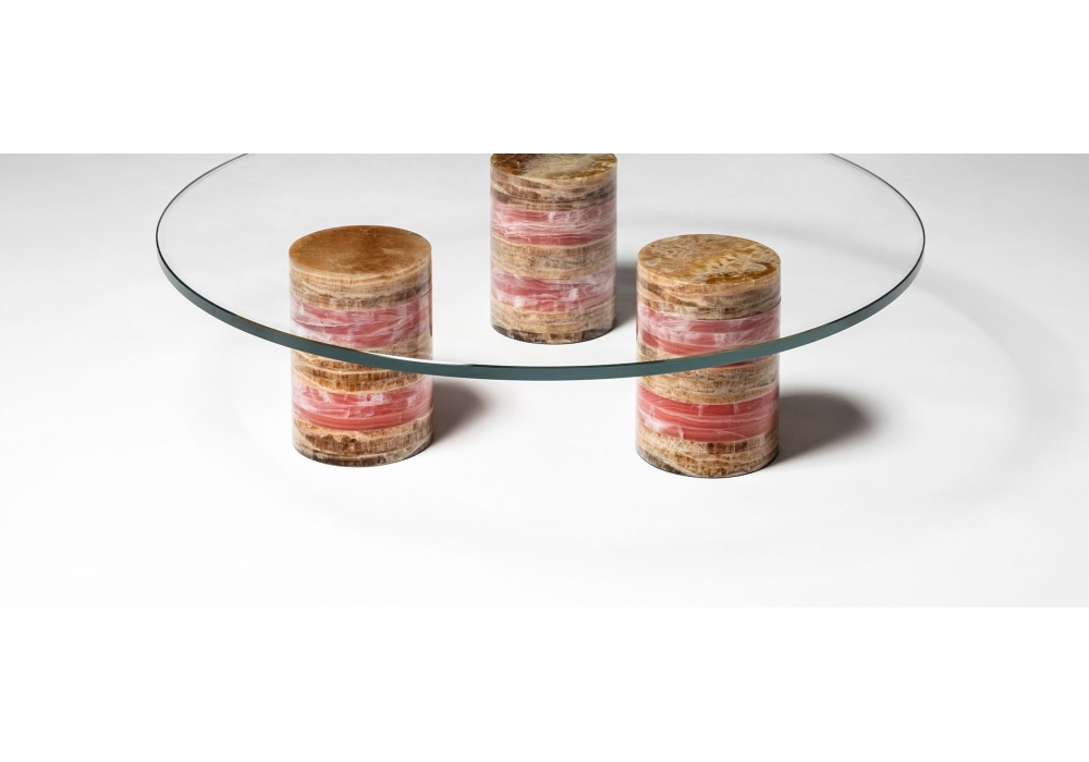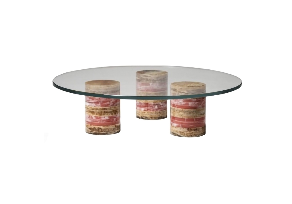 Architexture Coffee Table 02 designed by Patricia Urquiola for Budri is a coffee table made with 3 striped marble legs and extra clear tempered glass top. Available in different finishes.
