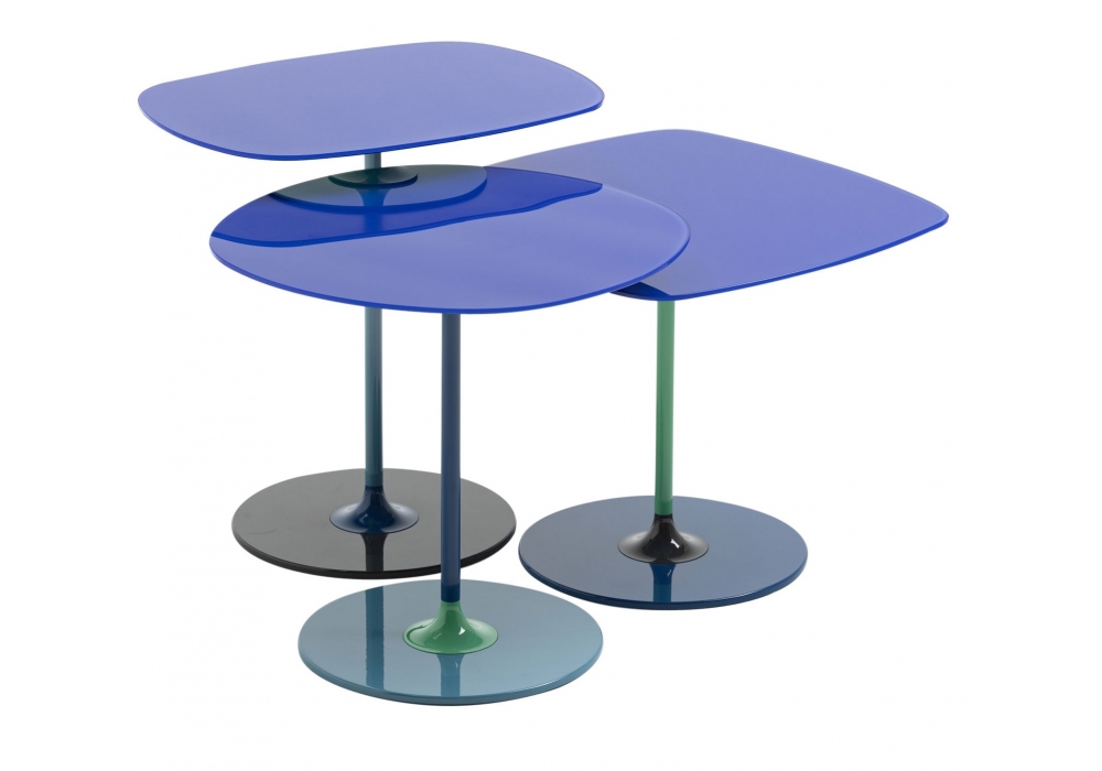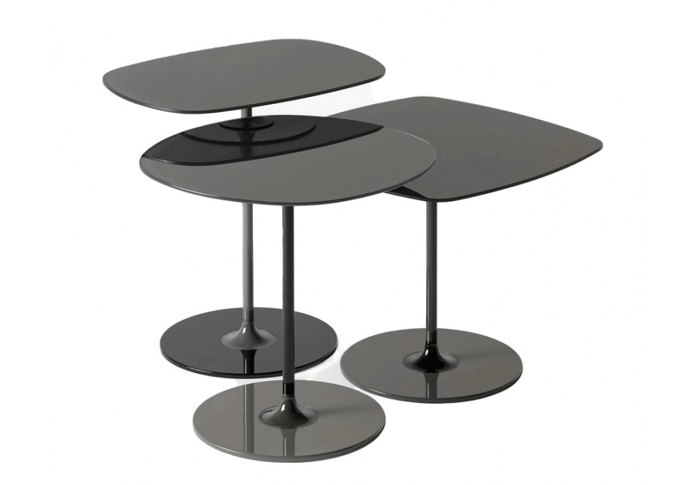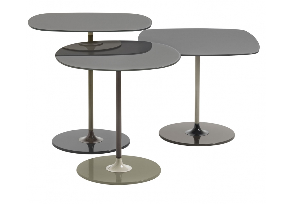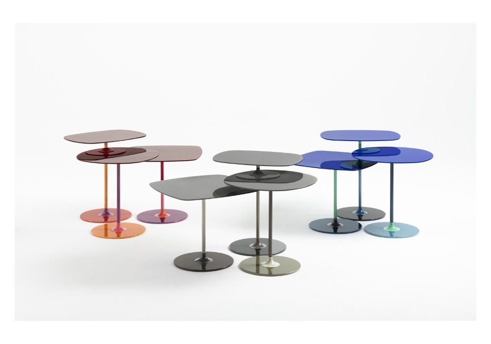Thierry designed by Piero Lissoni for Kartell is a side table made with painted steel structure and back-painted tempered glass top. Available in different finishes and dimensions.