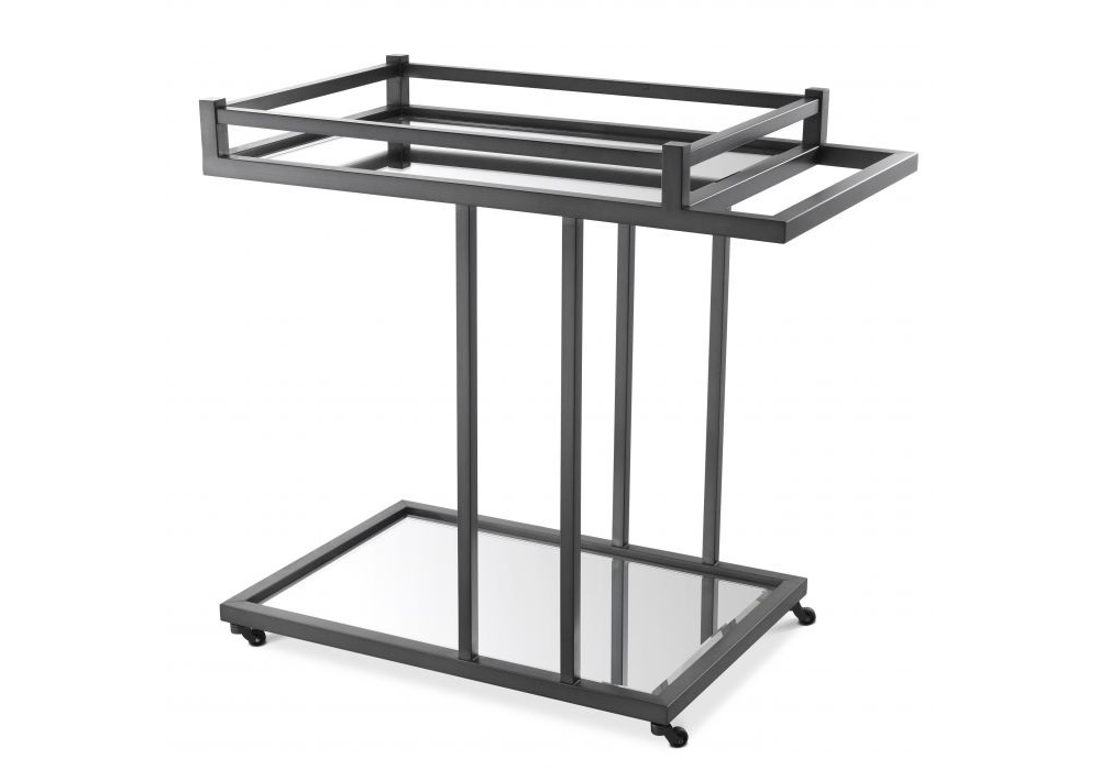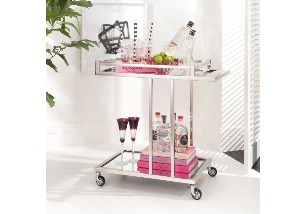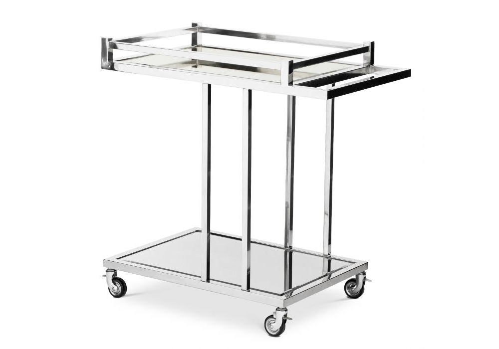 Trolley Beverly Hills designed by Eichholtz is a trolley decorated with handle, wheels and shelves in beveled mirrored glass.