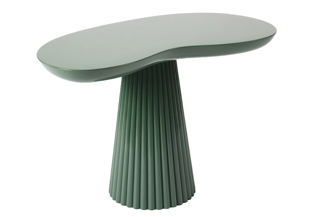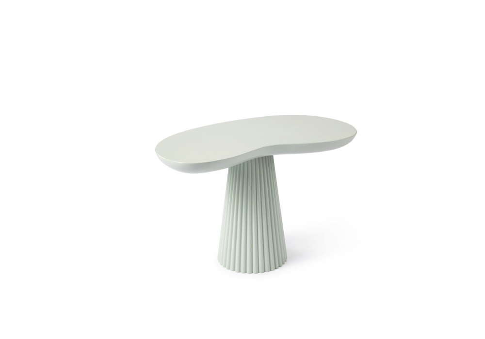 Mira N°1 designed by Thomas Dariel for Maison Dada is a side table with abstract shape top and striped conical base, entirely made of painted ceramic in different finishes.