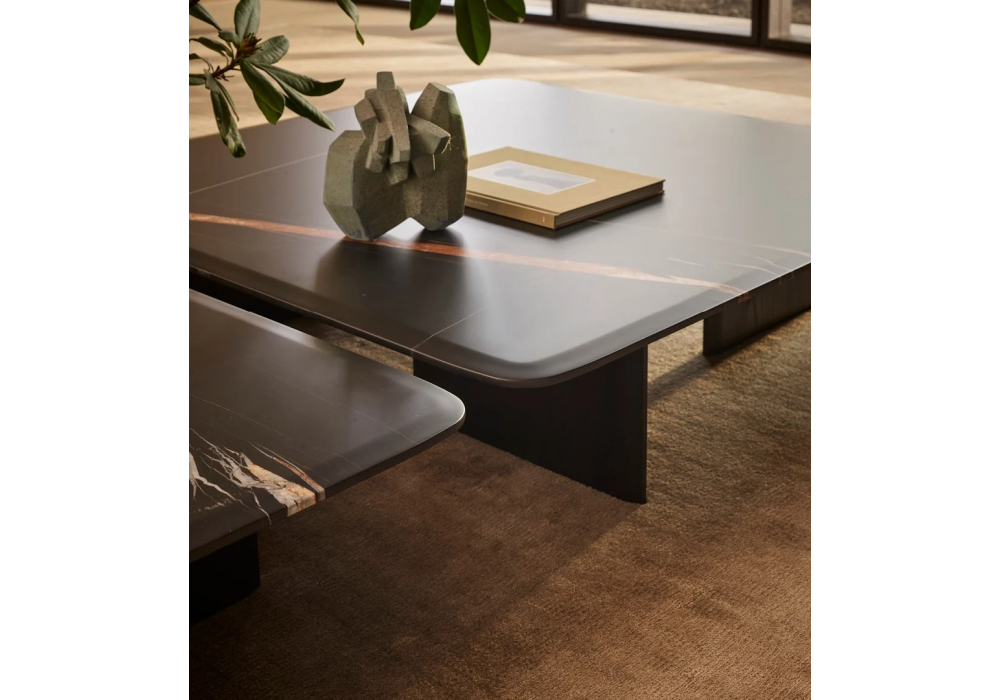 Mush designed by Jean-Marie Massaud for Poliform is a coffee tables collection with structure in black elm and top available in elm or marble, polished and glossy.