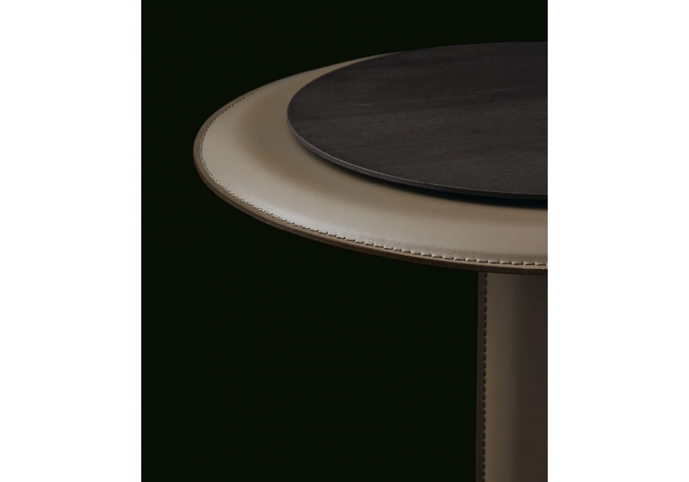 Mush designed by Jean-Marie Massaud for Poliform is a round side table available in black elm or with cover in hide-leather. Freestanding optional tray in black elm.