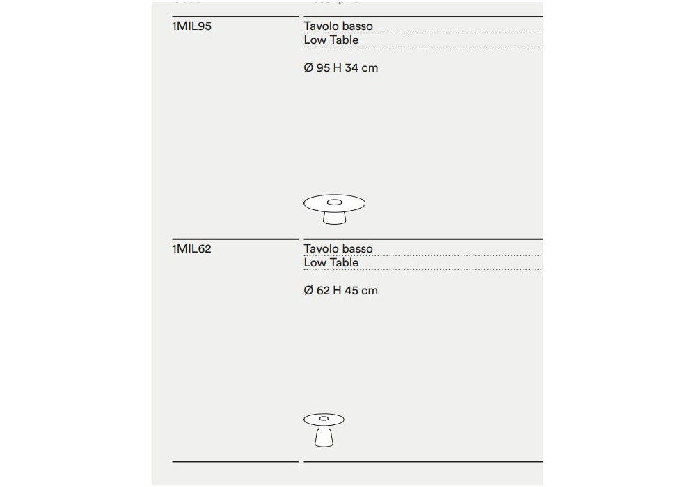 | Dimensions | Ø 95 x H 34 cm; Ø 62 x H 45 cm. |