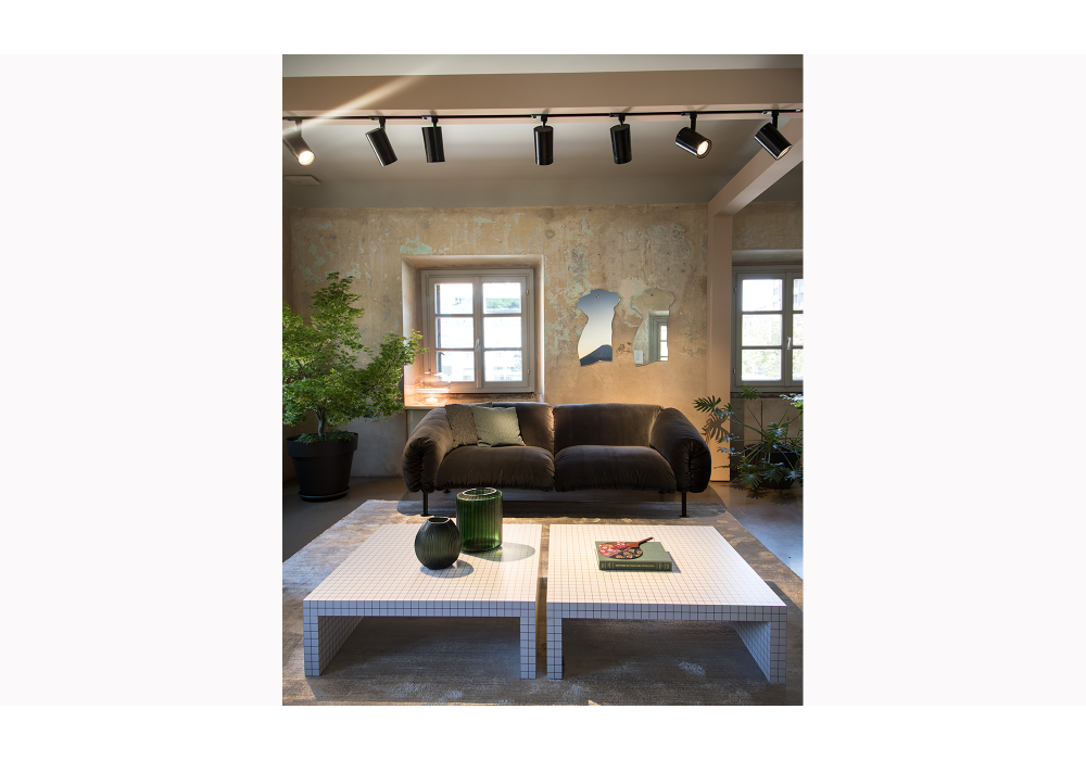 656 Quaderna designed by Superstudio / Cristiano Toraldo di Francia for Zanotta is a coffee table made with print laminated honeycomb wood structure, white color, with digital checkered print.