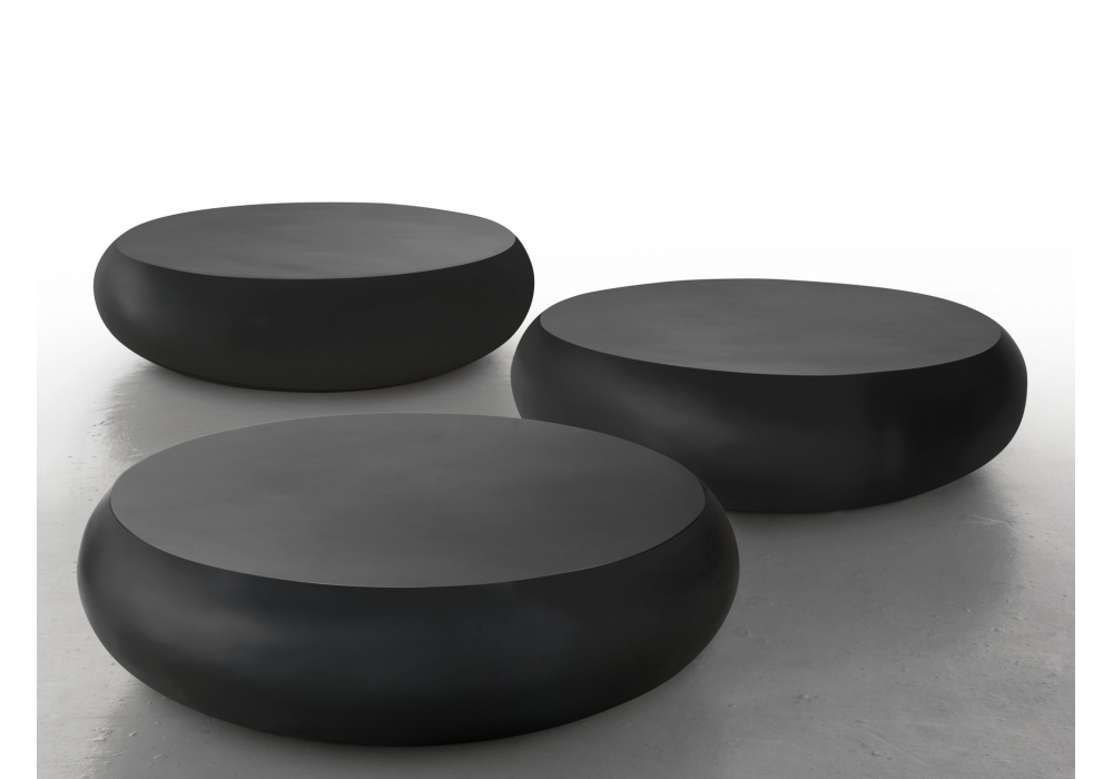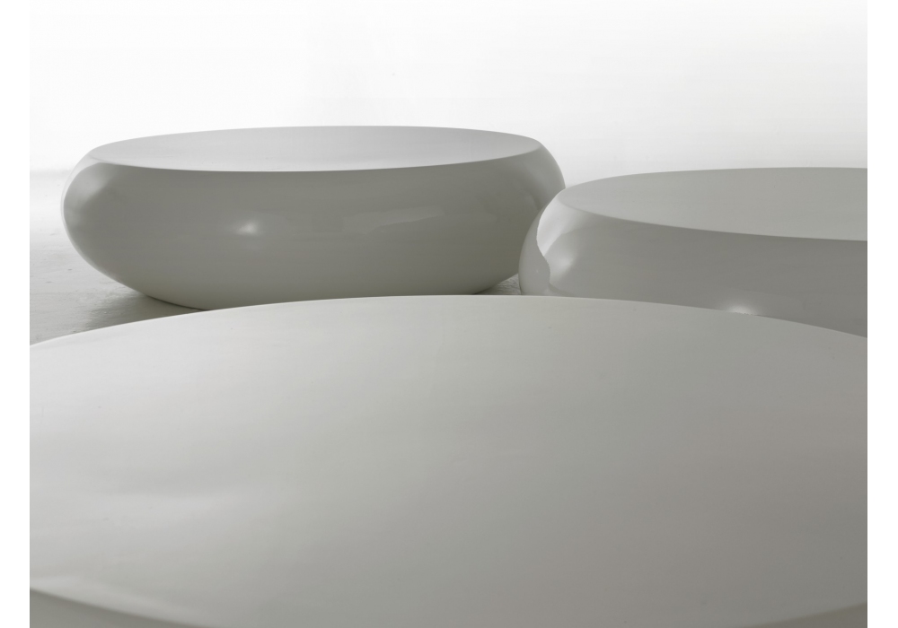Pillola designed by ImperfettoLab is a coffee table made of fiberglass, available in different finishes and sizes.
