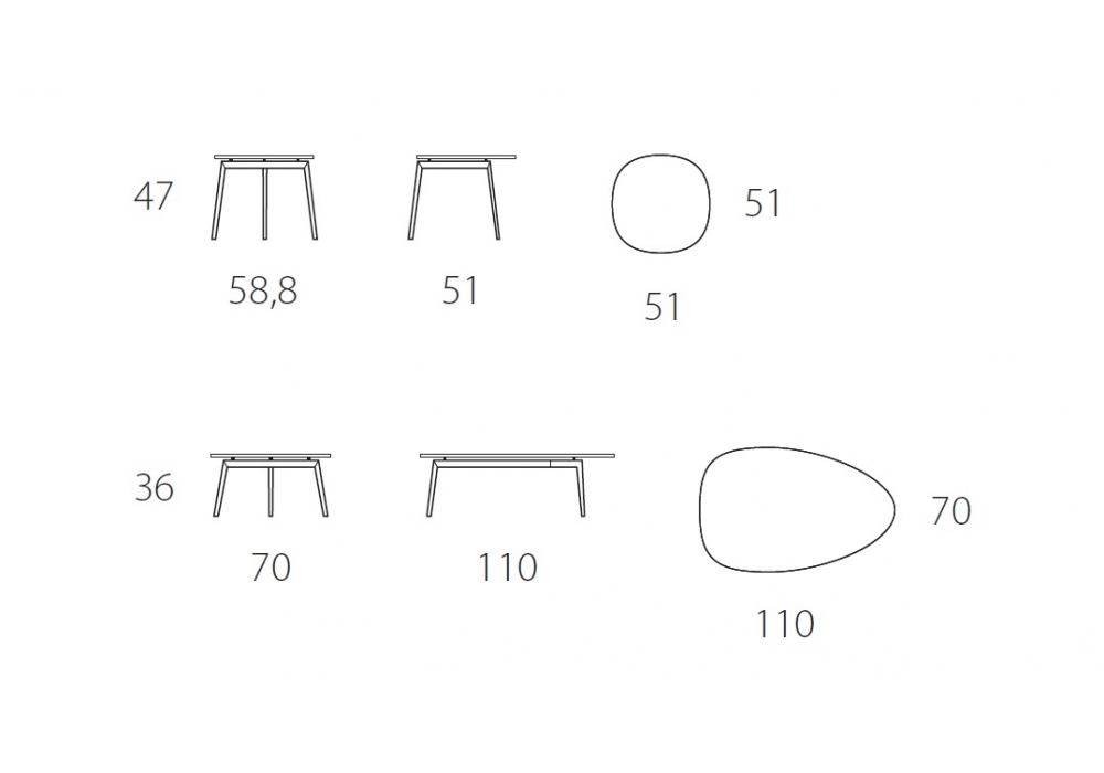 | Top | 51 x 51 cm; 110 x 70 cm. |