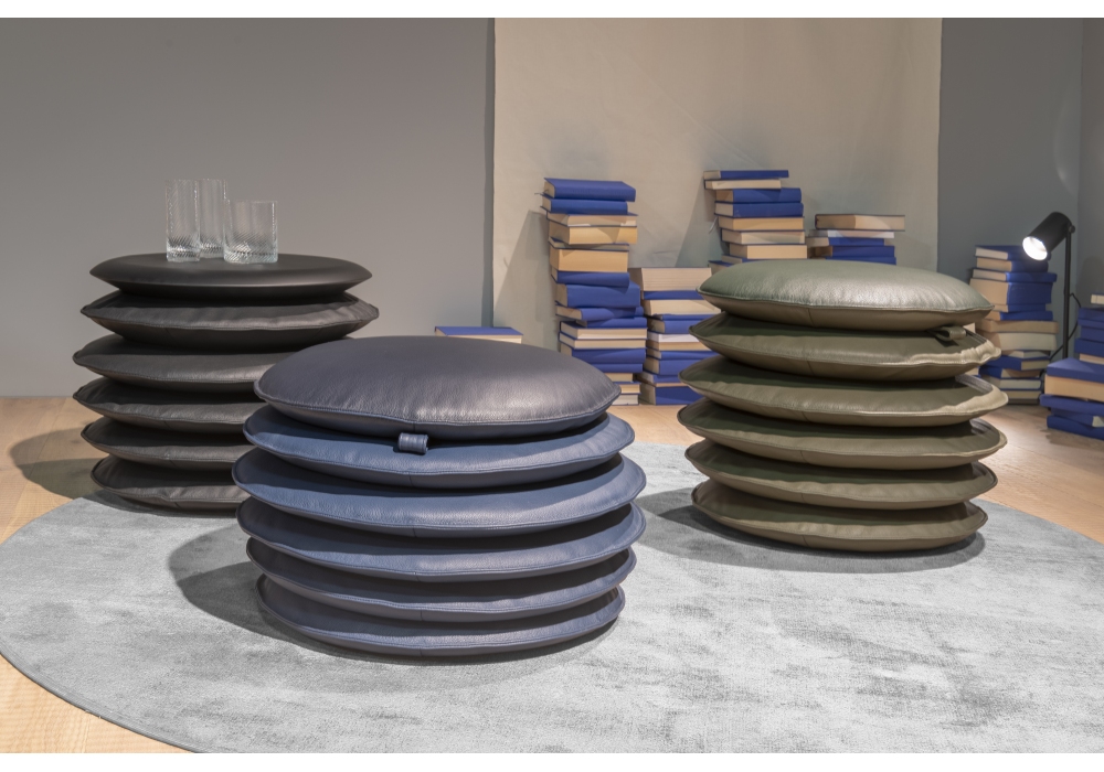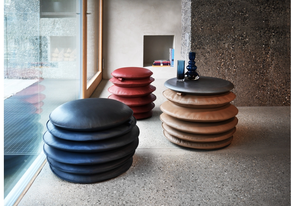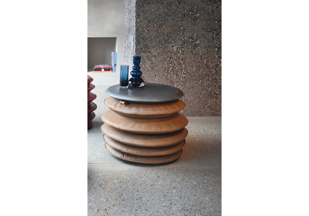 DS-5020/92 designed by Kai Staniaper De Sede is a height-adjustable occasional table with black back-lacquered glass top or painted in different RAL colors and leather structure. Available in different finishes.