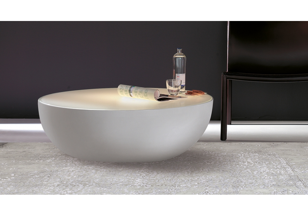 Planet Light designed by Gino Carollo for Bonaldo is a coffee table with base in painted aluminum in different finishes, top in extra-clear white acid-etched glass that is passed through by an internal light source. Available in 2 sizes.