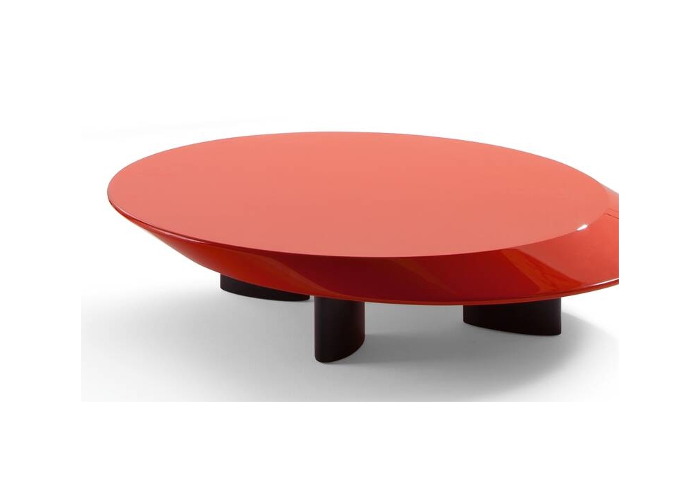 520 Accordo designed by Charlotte Perriand for Cassina is a coffee table with a glossy lacquered panel top and MDF particleboard legs. The base is in matte black lacquer and the top is available in various finishes.