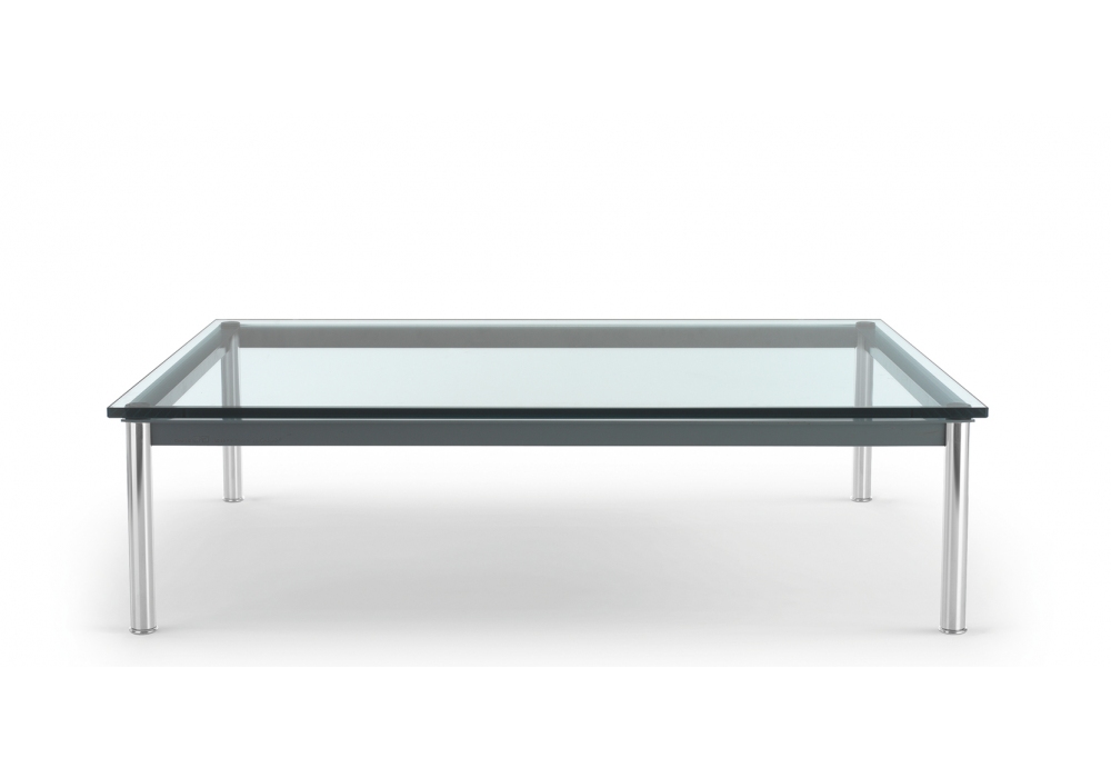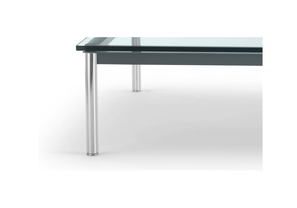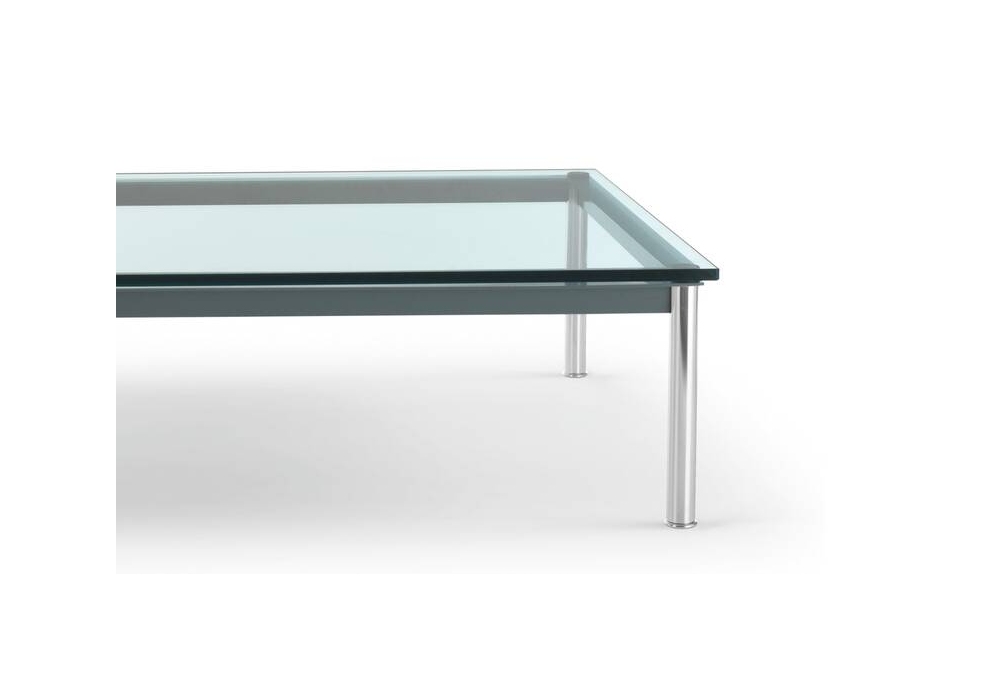 10 Table en Tube Basse designed by Le Corbusier, Pierre Jeanneret, Charlotte Perriand for Cassina is a coffee table with crystal, molded or colored glass top and chromed legs, with painted structure. Available in different finishes.