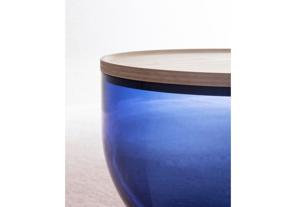 Mastea designed by Matteo Zorzenoni for Miniforms is a coffee table with base and top in ash, structure in blown Murano glass. Available in different finishes and sizes.