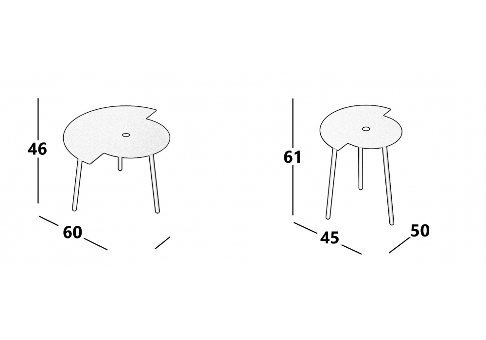 | Dimensions | 70 x 60 xx H 46 cm; 50 x 45 x H 61 cm. |