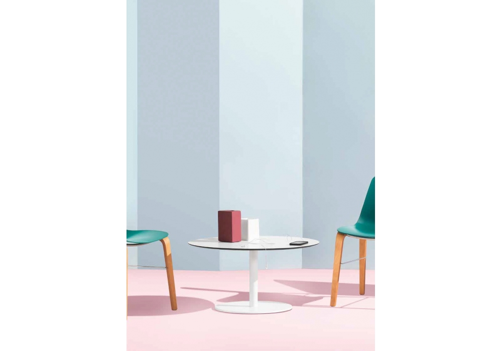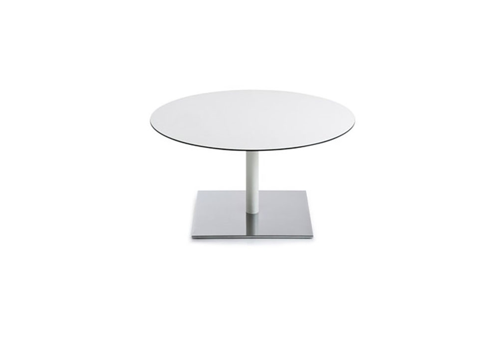 Incollection designed by Air Design for Luxy is a coffee table with square or round high-pressure decorative laminate top and die-cast aluminum structure between top and tube finish painted with epoxy powders in different finishes. The round or square base is in polished stainless steel or painted with epoxy powders. Available in different dimensions and finishes.