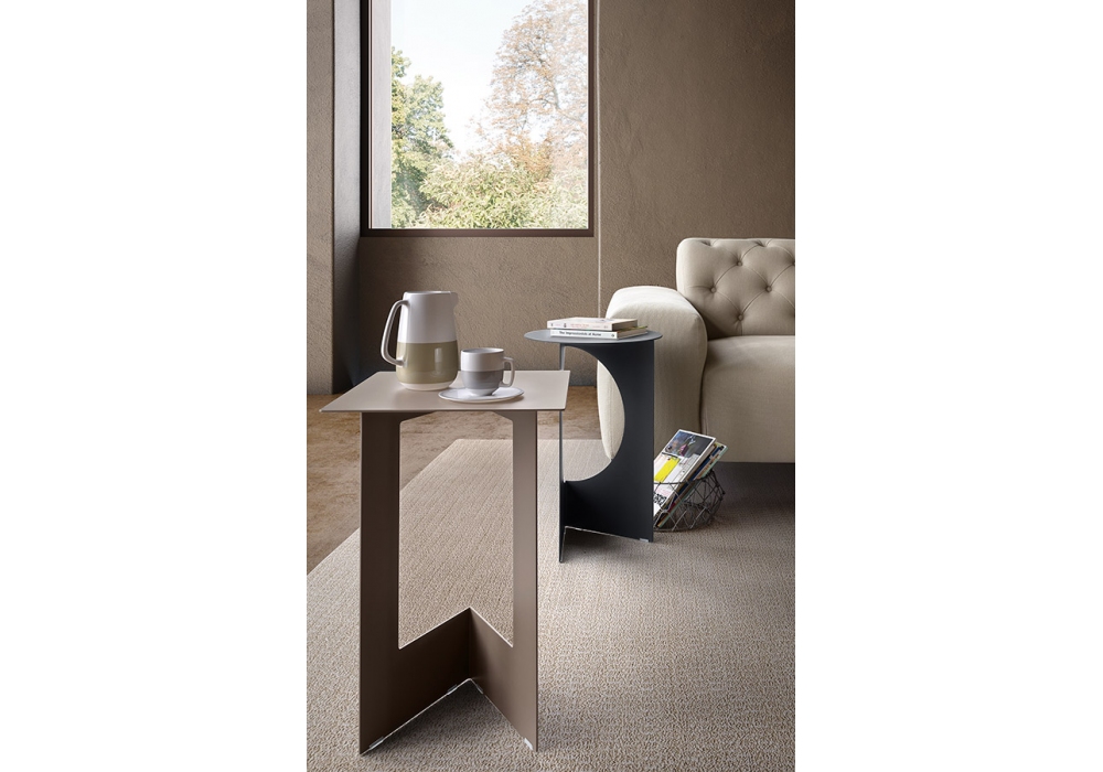 Duetto designed by Tim Kerp for Pianca is a side table with round or square top made of folded metal sheet. Available in different finishes.
