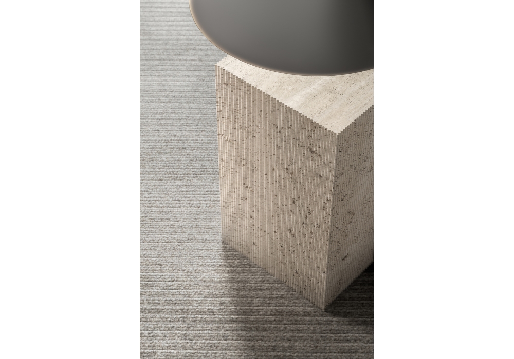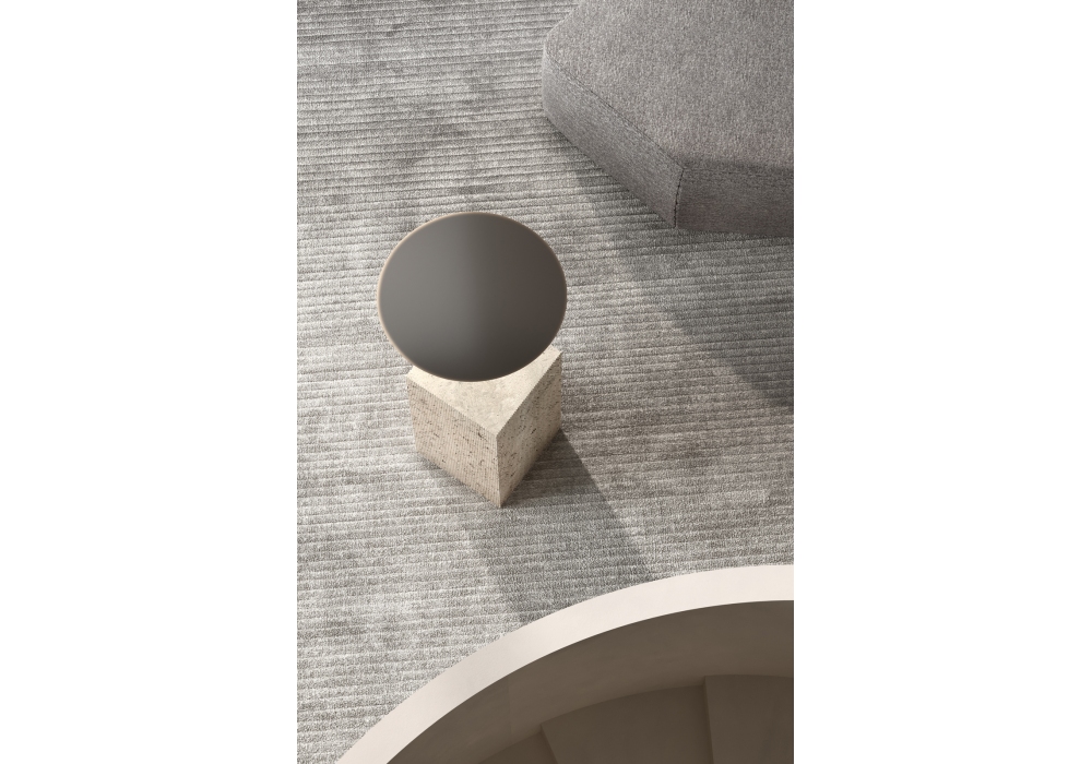 Rock designed by Massimo Tonetto for Venicem is a coffee table with structure in open pore striped travertine marble and metal top and visible parts in dark burnished brass or delabré finish.