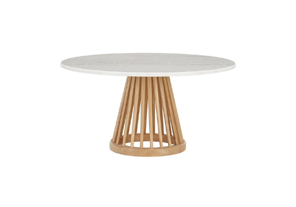 Fan designed by Tom Dixon is a side table with marble top available in different finishes and dimensions. Wooden base, available in natural oak or black stained birch.