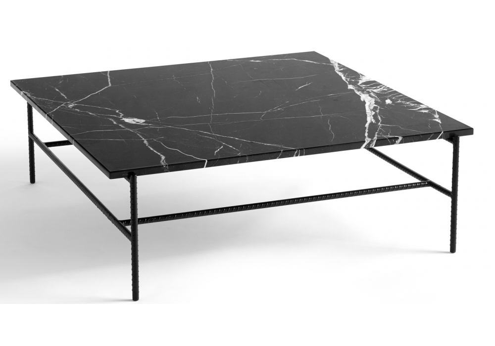 Rebar designed by Sylvain Willenz for Hay is a coffee table with polished marble top with beveled edges and powder-coated steel structure. Available in different dimensions.