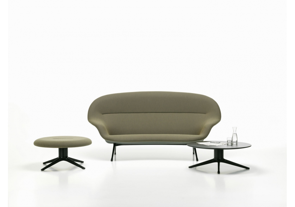 Abalon Table designed by Ronan & Erwan Bouroullec for Vitra is a coffee table made with MDF top real oak base material veneered or powder coated with textured finish. Non-swivel four-star base in die-cast aluminum, powder-coated finish.