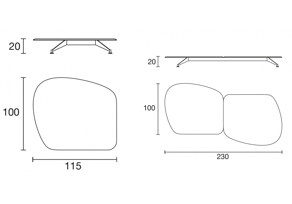 | Dimensions | 115 x 100 x H 20 cm; 230 x 100 x H 20 cm. |