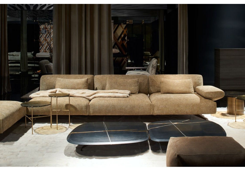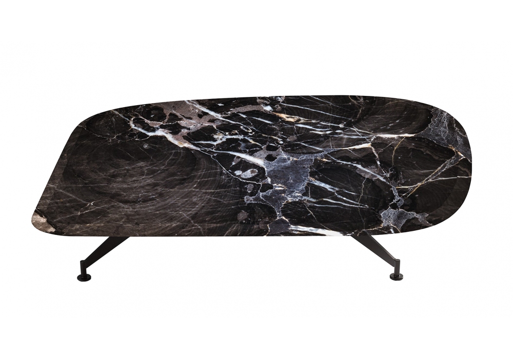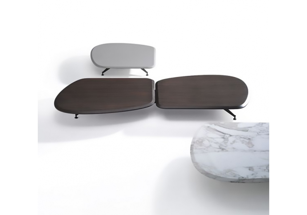 Butterfly designed and produced by Ivano Redaelli is a rounded coffee table with a bronze-coloured metal supporting structure. The top is available in the following materials: marble, natural Canaletto walnut plywood or painted in different matt finishes. Butterfly is available in different models and finishes.