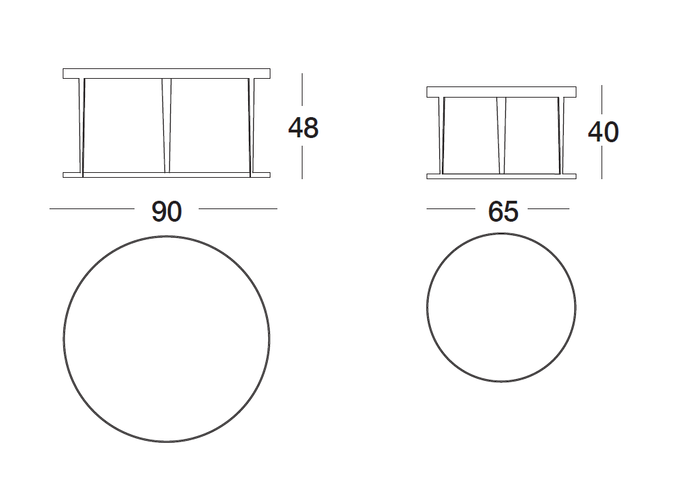 | Dimensions | Ø 90 x H 48 cm; Ø 65 x H 40 cm. |